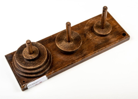 Probeer 7 schijven van groot naar klein op een staaf te sorteren.