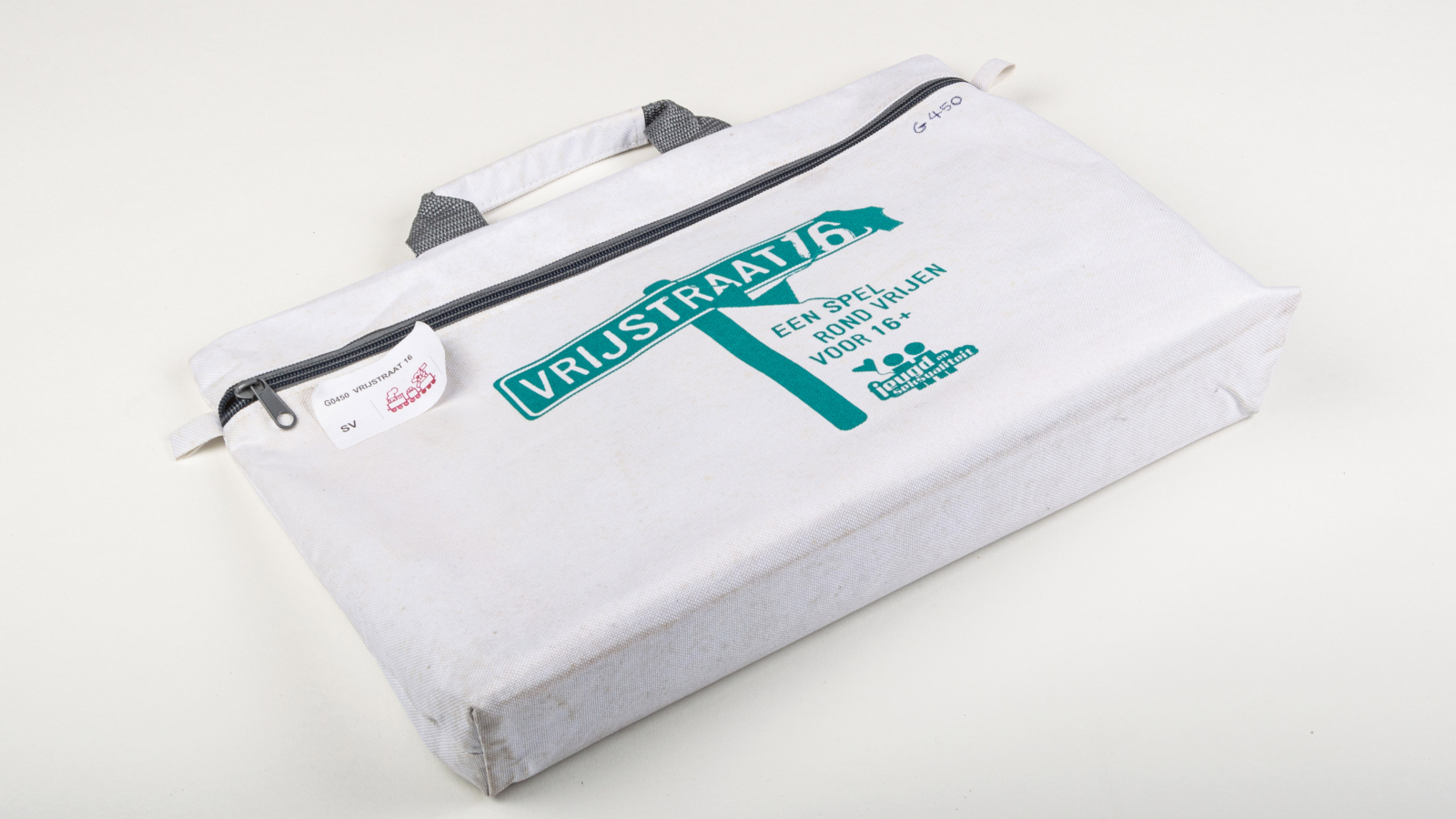 Inhoud: handleiding - 25 blauwe kaartjes - 25 oranje - 25 paarse - 25 blanco - spelbord - 2 speciale dobbelstenen - kamerbordjes - krant - kaartjes voorbehoedsmiddelen - maagdenvliessjabloon