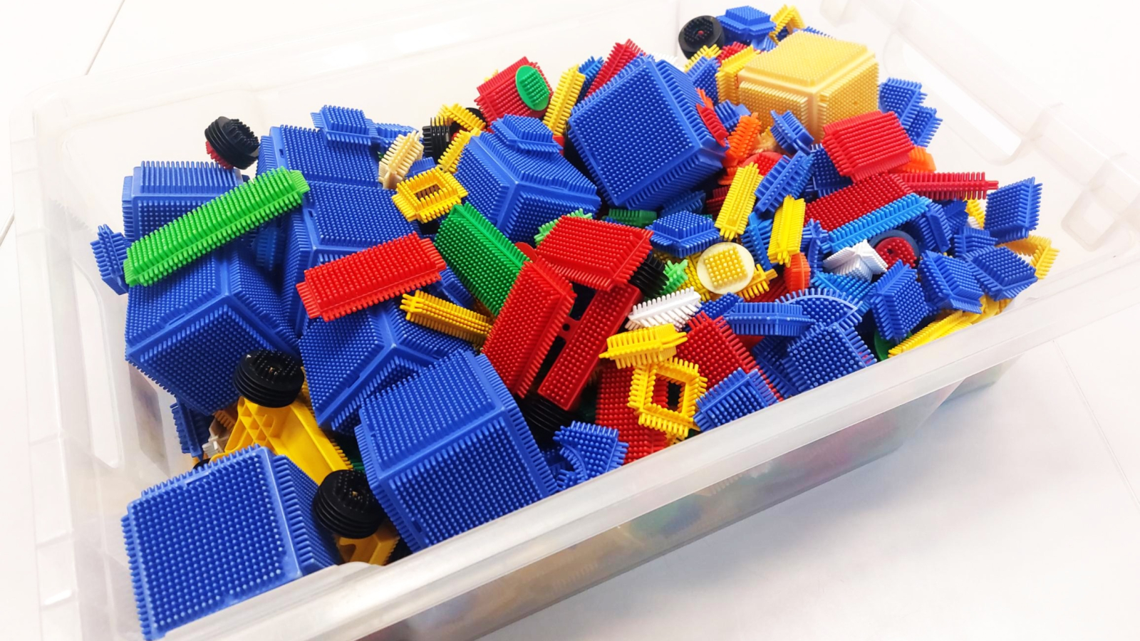 Een grote doos vol Noppers, om te bouwen met eindeloos speelplezer