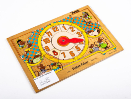 Leg de twaalf houten puzzelstukken op de juiste plaats in de grondplaat en je bekomt een prachtige uurwerk.