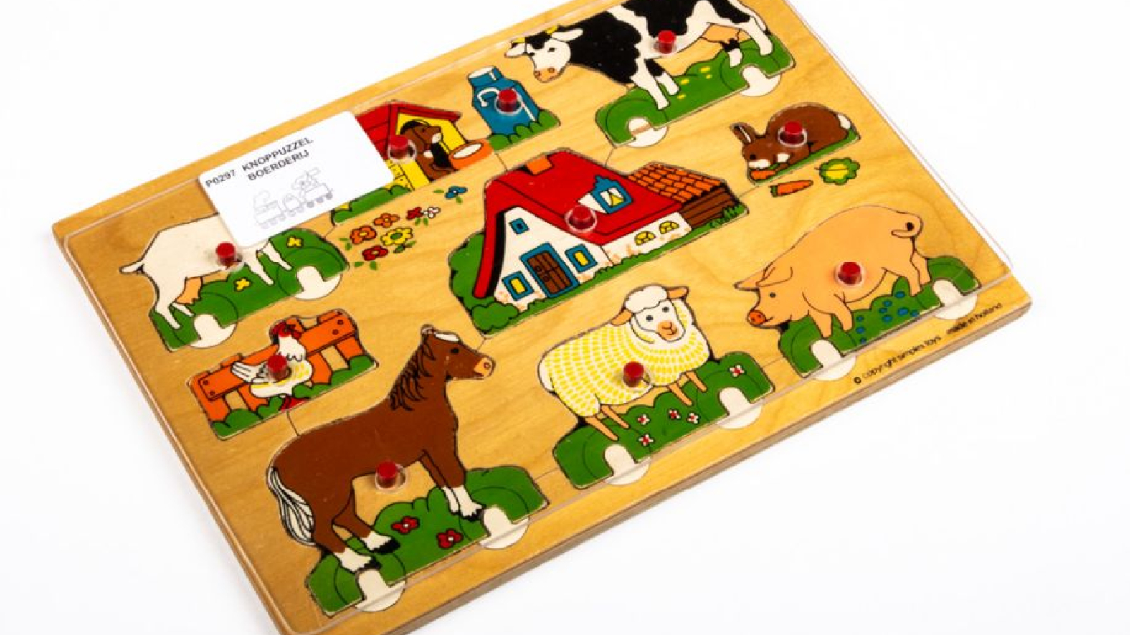 Knoppuzzel met 10 figuren rond het thema van de boerderij.