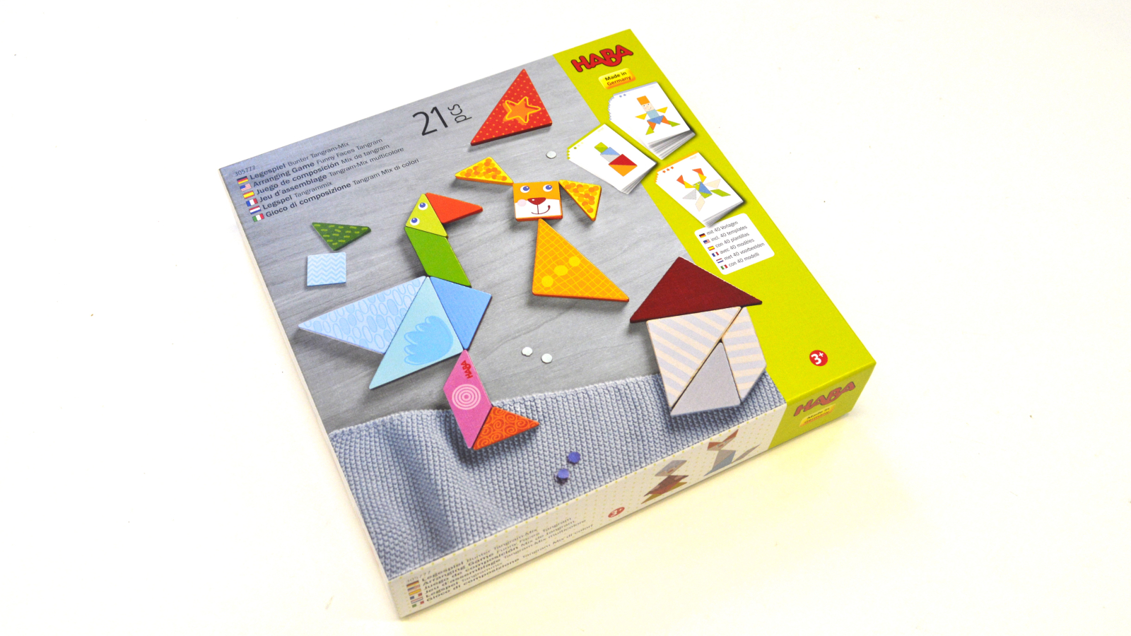 Deze blokken zijn geïnspireerd op de puzzelstukken van de tangram en het legspel kan dan ook als een normale tangram set gebruikt worden.