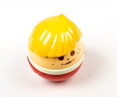 Zijn lachende gezichtje, zijn schitterende haren en het zachte klokkenspel trekken de nieuwsgierigheid van het kind aan.