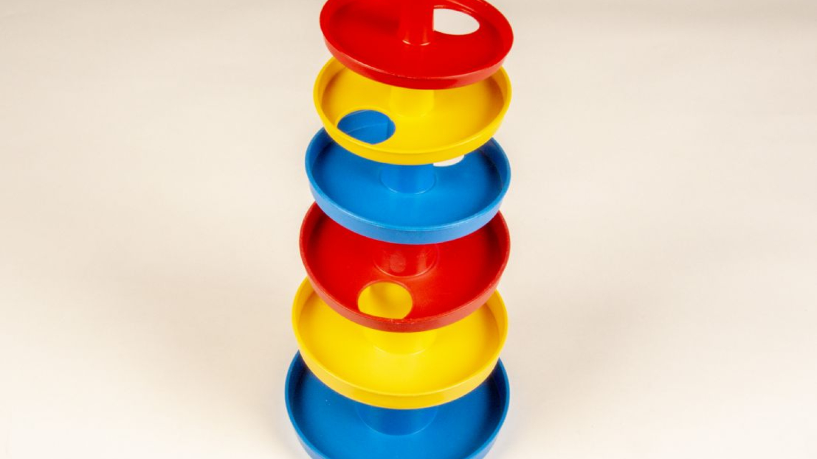 Leg de bal in de bovenste schijf en laat de bal zijn weg zoeken. De bal loopt vlotjes naar beneden.